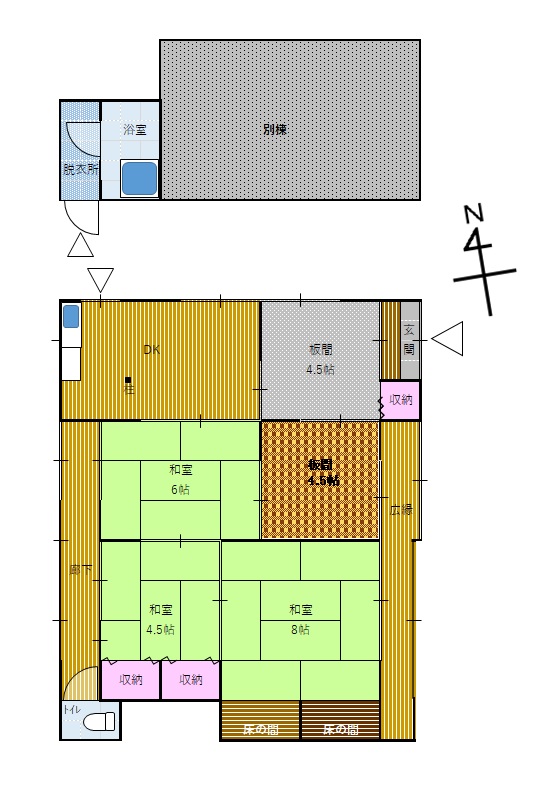 OVERVIEW 賃貸 No.407 竹田市大字会々④ 5DK3.5万円 ペット可 NEW交渉中 2026年2月17日 公開 このページを印刷する 物件概要 物件所在地 竹田市大字会々④ 形態 賃貸 教育機関等 竹田保育所:1.2㎞、竹田幼稚園:1.2㎞、竹田小学校:1.2㎞、竹田中学校:3㎞、竹田高校:1.5㎞ 主要施設 志賀内科:1.2㎞、竹田市役所:1.2㎞、豊後竹田駅:1.5㎞ 構造 木造瓦葺平家建 間取り 5DK 敷地面積 198.34㎡ 延床面積 72.71㎡ 水道 上水道 トイレ くみ取り(簡易水洗) 特記事項 ペット応相談 間取り図 画像をクリックすると拡大します 空き家バンクのご利用方法はこちら 物件一覧 あなたにオススメの物件 売買 No.473 売買 No.483 売買 No.456 物件一覧に戻る